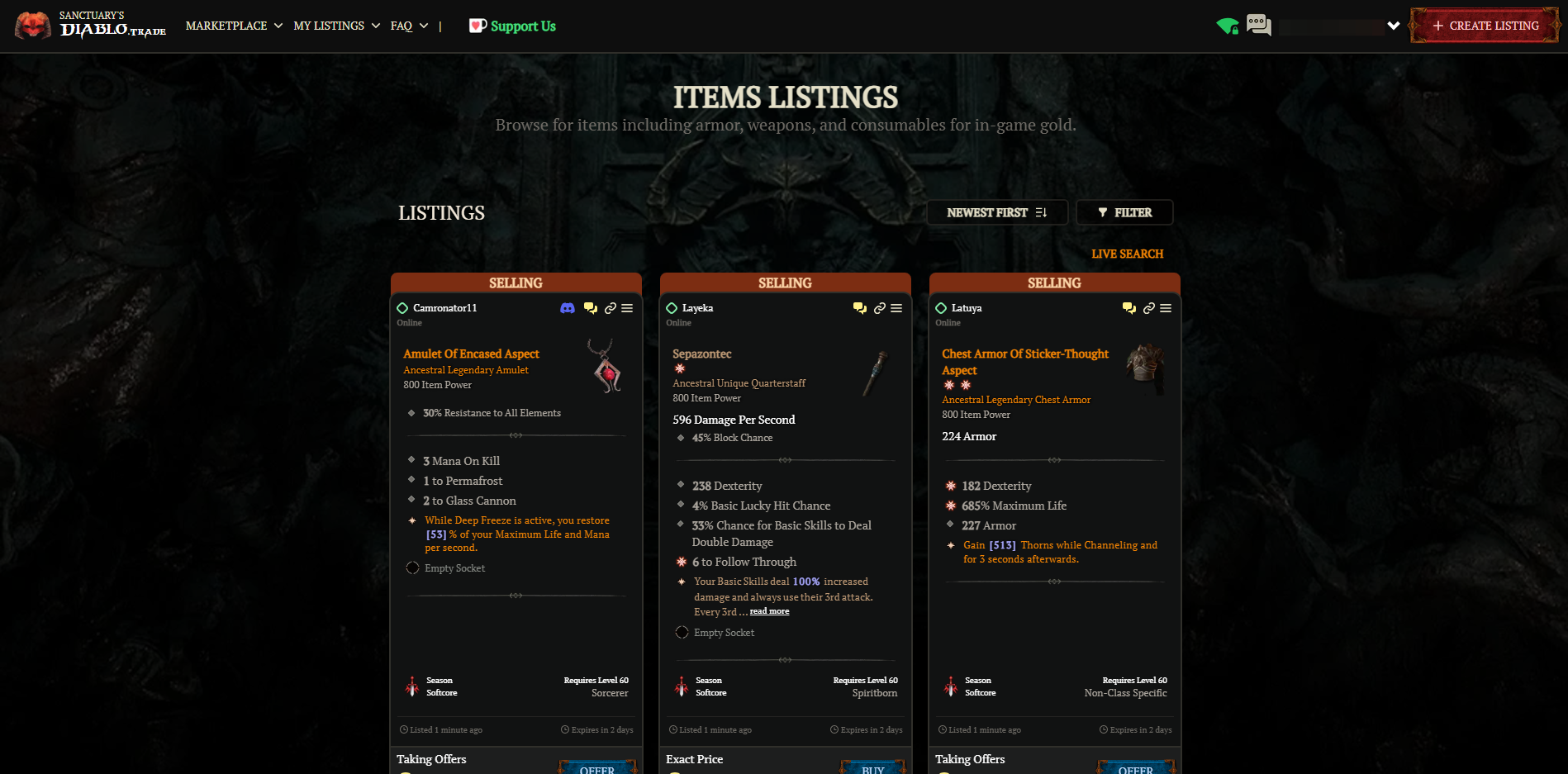 The features and tools on Diablo Trade were largely inspired by feedback from the Diablo community and our own experiences with trading in-game. We prioritized ease of use, transparency, and security—things like streamlining the listing process, advanced filtering and secure trading were critical to solving the pain points we had identified in other platforms. Listening to the needs of the players and evolving based on that feedback has been a big part of our development strategy.