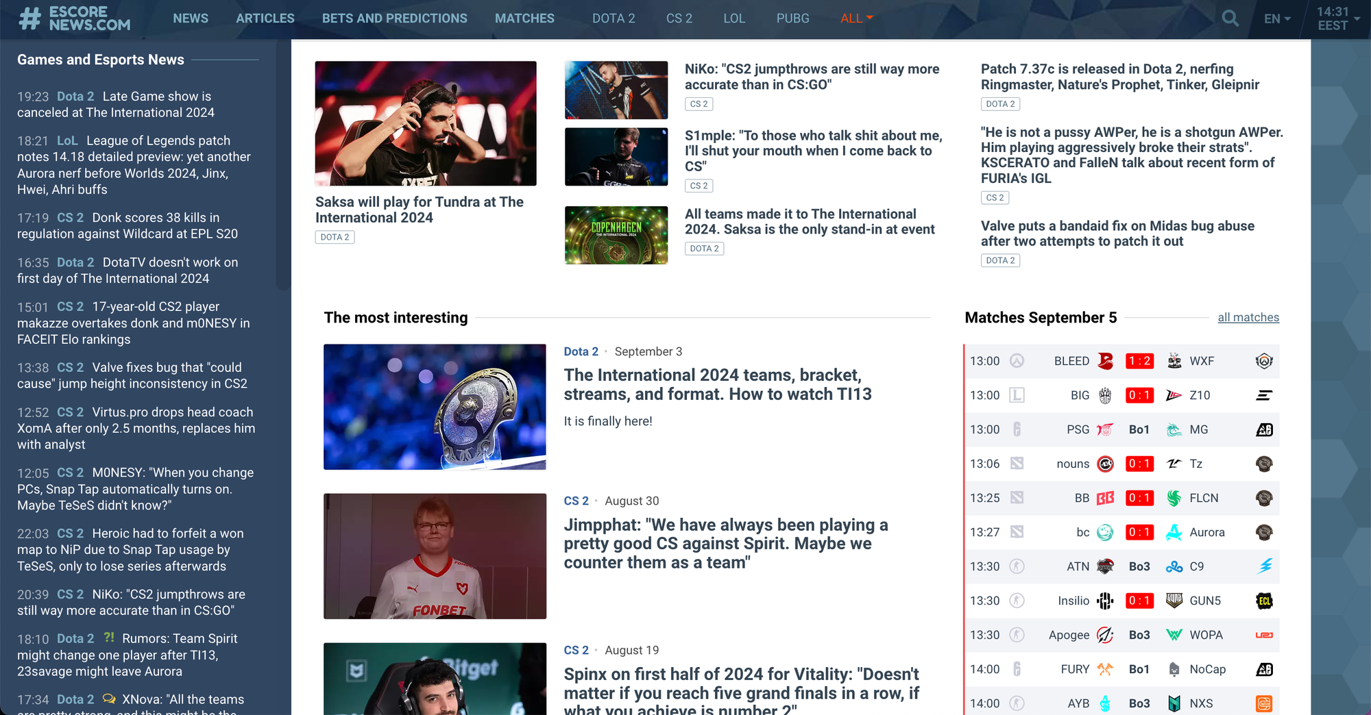 Escore News is a specialized platform that focuses on delivering real-time esports news, match results, and in-depth tournament coverage. Catering to fans of major titles like Dota 2, CS, and Valorant, Escorenews provides live updates on matches, detailed statistics, and insightful analysis. The site also covers esports betting, offering tips and data to guide fans.