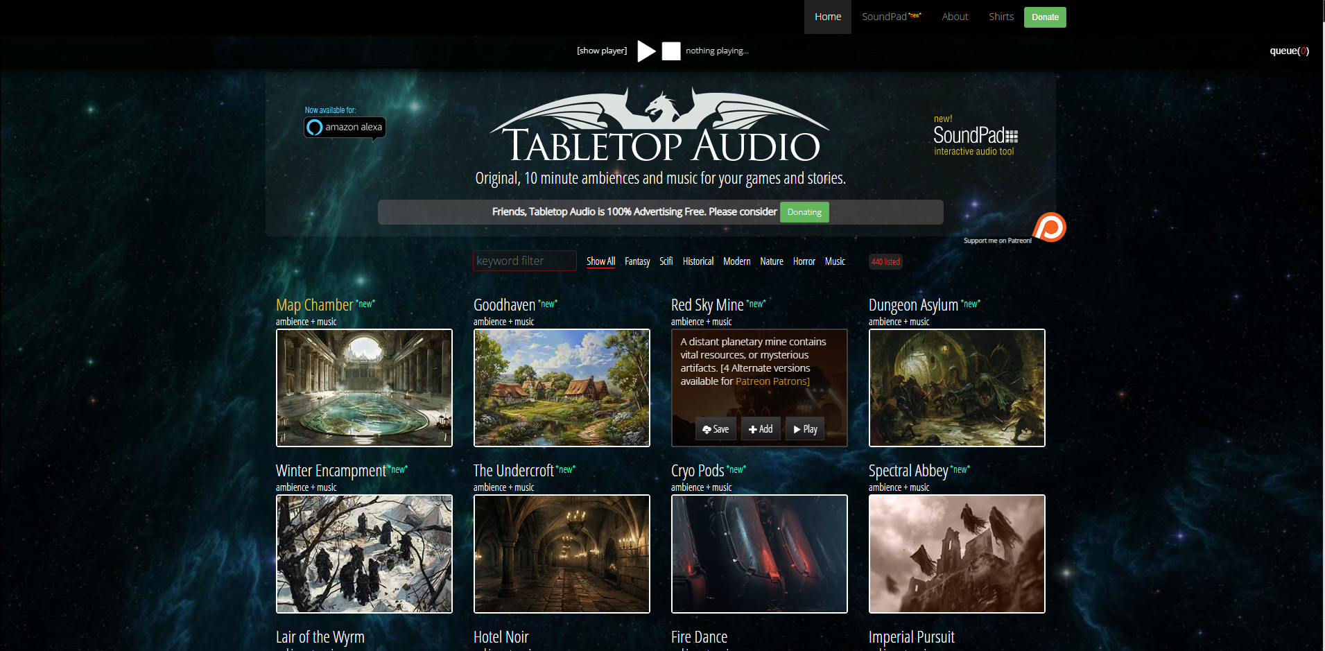 Elevate your gaming sessions with immersive background audio. From dungeon ambiances to battle themes, this site provides soundscapes to match any adventure. Customizable playlists and looping options ensure the perfect mood for every scenario. Whether you're fighting dragons or exploring haunted ruins, Tabletop Audio sets the scene beautifully.