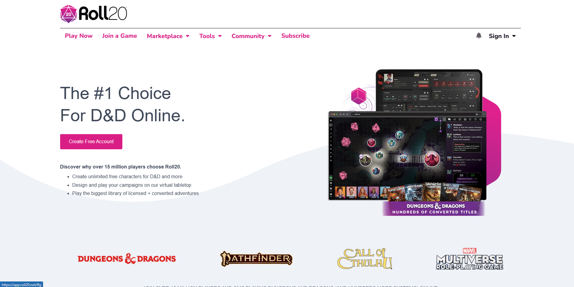 A leading virtual tabletop platform for running and playing tabletop RPGs like D&D. Packed with features like dynamic maps and integrated character sheets, it’s ideal for remote gameplay. Roll20 also offers a marketplace for additional resources like tokens and maps to enhance your campaigns. With tutorials and a supportive community, it's perfect for new and experienced players alike.