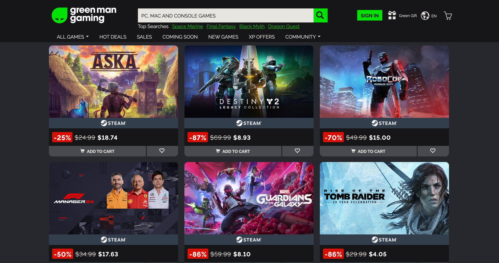 This trusted retailer frequently offers steep discounts on new releases and pre-orders. Green Man Gaming is an official partner with publishers, so you can snag deals while ensuring you’re purchasing legitimate game keys.