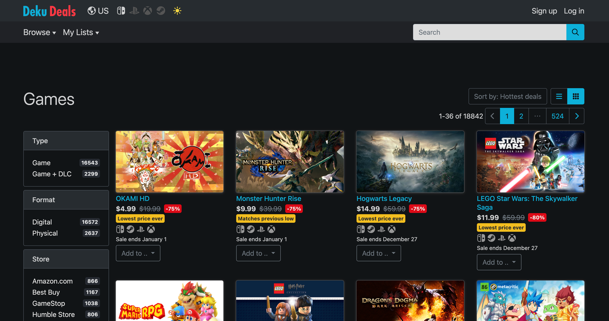 A fan-favorite among gamers, DekuDeals specializes in tracking prices for Nintendo Switch, PlayStation, Xbox, and PC games. Its clean interface makes it easy to spot the best deals, and you can set up alerts for price drops on games and accessories. A must-have tool for bargain hunters.