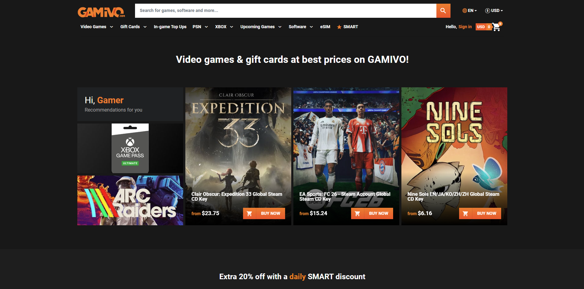GAMIVO is a digital marketplace offering sharp discounts on PC and console game keys, with frequent promotions and flash sales that help you save on both big releases and indie titles. Unlike many marketplaces, only verified registered companies can sell on GAMIVO, each going through a detailed approval process that reduces scams and better protects both buyers and developers.